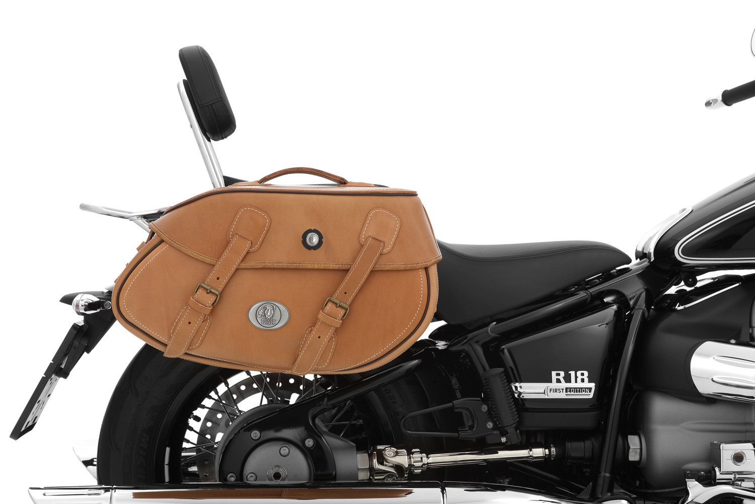 Štýlovo, tvarovo, veľkostne a svojím americkým vzhľadom sú kožené tašky vyrobené na vysokej úrovni a dokonale ladia s BMW R 18. Spájajú oldschoolový štýl so súčasným, nekomplikovaným ovládaním, pretože majú uzamykateľný držiak C-Bow.