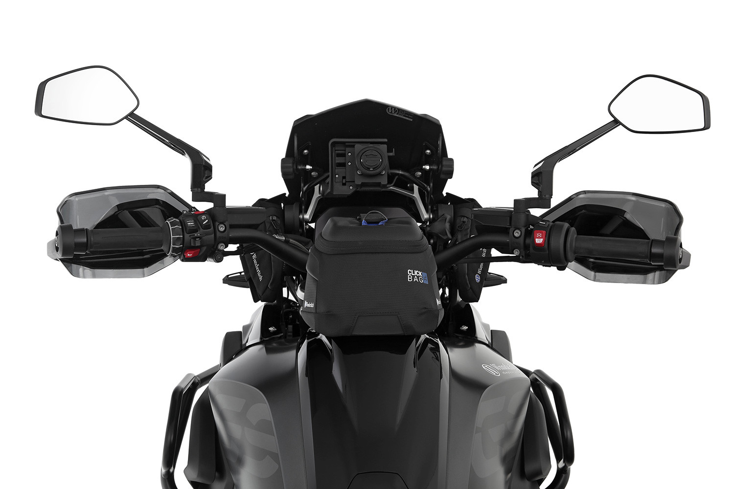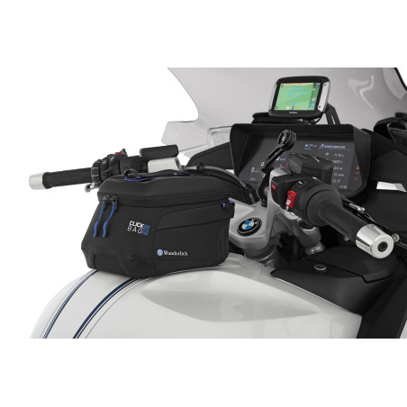 Manipulácia je mimoriadne pohodlná: CLICK BAG sa pri nasadzovaní zasúva zhora do krúžku nádrže, kým sa zámok automaticky nezablokuje. Pomocou popruhu je možné zámok uvoľniť jedným potiahnutím. Vak na nádrž je možné okamžite vybrať a doplniť palivo. Robustný uzamykací mechanizmus sa dá pozdĺžne posúvať dopredu alebo dozadu. Pozíciu tankvaku na nádrži je možné nastaviť v troch polohách v 20 mm rastri podľa individuálnych potrieb a okolností, ktoré vyplývajú z tvaru nádrže alebo uhla riadenia.