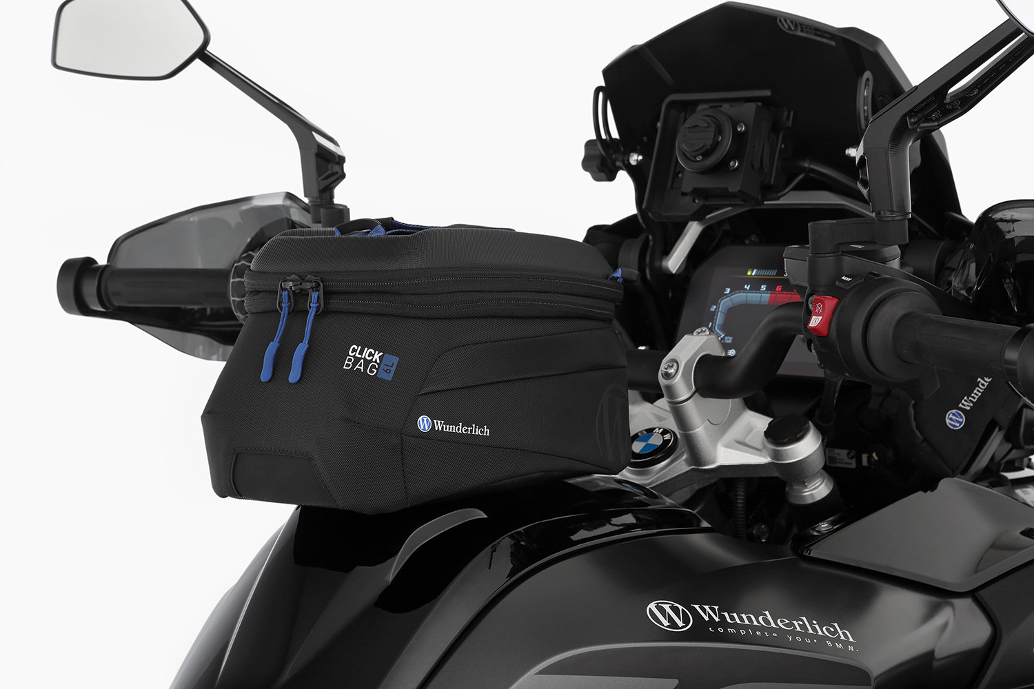 Manipulácia je mimoriadne pohodlná: CLICK BAG sa pri nasadzovaní zasúva zhora do krúžku nádrže, kým sa zámok automaticky nezablokuje. Pomocou popruhu je možné zámok uvoľniť jedným potiahnutím. Vak na nádrž je možné okamžite vybrať a doplniť palivo. Robustný uzamykací mechanizmus sa dá pozdĺžne posúvať dopredu alebo dozadu. Pozíciu tankvaku na nádrži je možné nastaviť v troch polohách v 20 mm rastri podľa individuálnych potrieb a okolností, ktoré vyplývajú z tvaru nádrže alebo uhla riadenia.