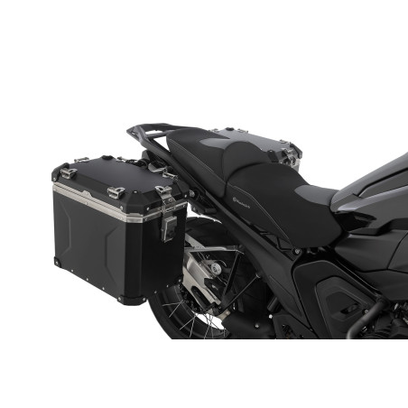 Či už na výlet po diaľnici, na North Cape alebo cez púšť: tieto robustné, ľahké a štýlové hliníkové puzdrá EXTREME vás prevedú hrubým aj slabým! Nasadenie na nosič je jednoduché vďaka rýchloupínaciemu systému. Sú absolútne prachotesné a vodotesné vďaka špeciálnemu systému tesnenia. Dôsledné používanie len vysokokvalitných materiálov zaisťuje dlhú životnosť nášho „EXTREME“ batožinového systému. Prispieva k tomu opracovaný 1,5 mm hliníkový plech so stabilizačnými guľôčkami (hmotnostne optimalizovaný, ale robustný), nerezové kovanie, vymeniteľná celoobvodová ochrana na všetkých rohoch a ochranné krytky zámkov.