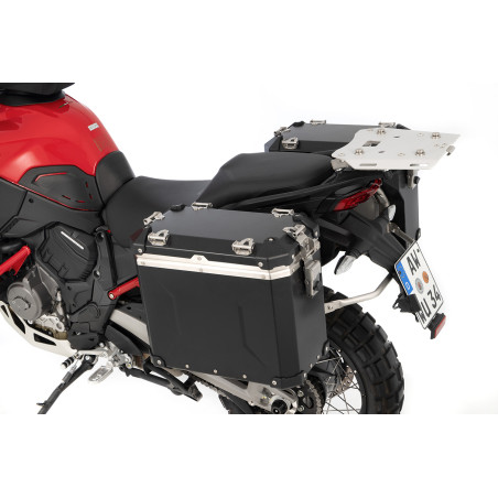 Naše robustné, ľahké a štýlové EXTREME tenké hliníkové puzdrá vás budú sprevádzať hrubými aj tenkými! Nasadenie na nosič je jednoduché vďaka rýchloupínaciemu systému. Sú absolútne prachotesné a vodotesné vďaka špeciálnemu systému tesnenia. Dôsledné používanie len vysokokvalitných materiálov zaisťuje dlhú životnosť nášho „EXTREME“ batožinového systému. Prispieva k tomu opracovaný 1,5 mm hliníkový plech so stabilizačnými lištami (hmotnostne optimalizovaný, ale robustný), nerezové kovanie a vymeniteľná celoobvodová ochrana na všetkých rohoch.