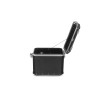 Po otvorení oboch zámkov pántov vpredu aj vzadu možno veko úplne odňať a púzdra jednoducho zhora naložiť. Ak je otvorený iba jeden z dvoch zámkov, druhý zámok funguje ako záves. Veko je možné umiestniť dopredu alebo dozadu a drží ho na mieste bezpečnostné lano.