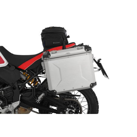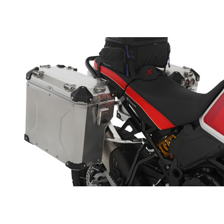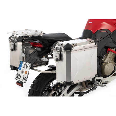Naše robustné, ľahké a štýlové EXTREME tenké hliníkové puzdrá vás budú sprevádzať hrubými aj tenkými! Nasadenie na nosič je jednoduché vďaka rýchloupínaciemu systému. Sú absolútne prachotesné a vodotesné vďaka špeciálnemu systému tesnenia. Dôsledné používanie len vysokokvalitných materiálov zaisťuje dlhú životnosť nášho „EXTREME“ batožinového systému. Prispieva k tomu opracovaný 1,5 mm hliníkový plech so stabilizačnými lištami (hmotnostne optimalizovaný, ale robustný), nerezové kovanie a vymeniteľná celoobvodová ochrana na všetkých rohoch.