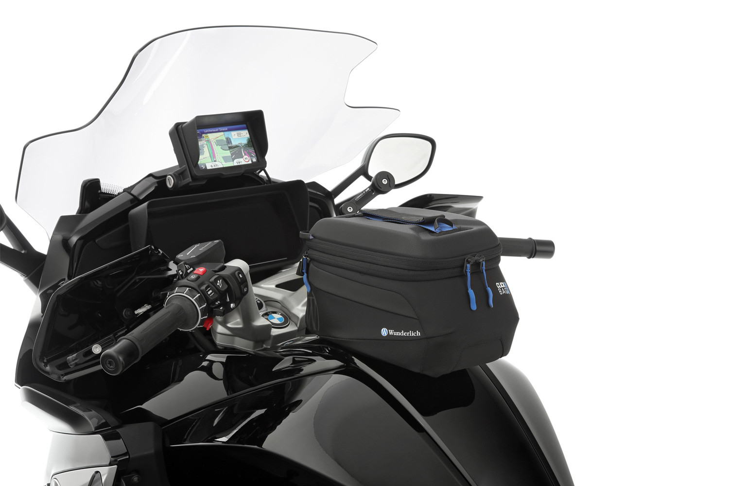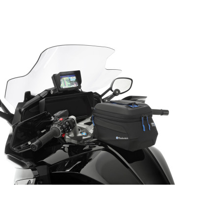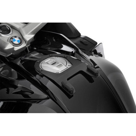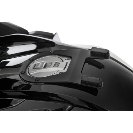 Modelovo špecifický, takzvaný krúžok na nádrž tvorí pevný základ pre bezpečné, mechanické uzamknutie tankvakov CLICK BAG. Ak chcete pripevniť CLICK BAG, zasuňte ho zhora do dvoch vodiacich líšt krúžku nádrže, kým sa zámok automaticky nezaistí. Vďaka popruhu na tankvaku sa zámok dá uvoľniť potiahnutím. To znamená, že tankvak sa dá vybrať raz-dva – napríklad na doplnenie paliva.