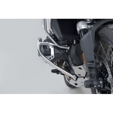 Robustný padací rám z nerezovej ocele chráni motor a komponenty pred poškriabaním a poškodením spôsobeným pádom kolesa. Použitie otryskanej a elektrolyticky leštenej nerezovej ocele ponúka oproti oceli s povlakom výhodu v tom, že poškodenie nárazovej tyče nevedie k strate odolnosti proti korózii.