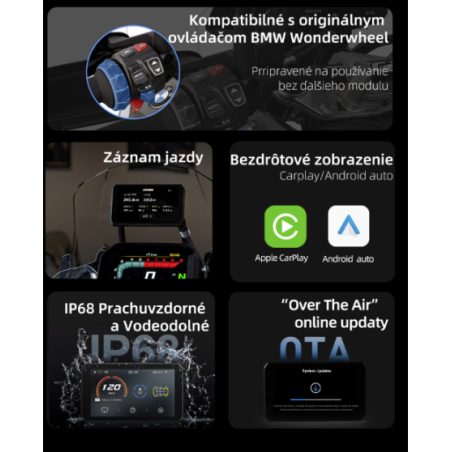Model K1600 nepodporuje prepínanie funkcie TFT a ovládania NAV. Preto, keď používate AIO-5 Play pre BMW na K1600, nebudete môcť ovládať Wonder Wheel priamo ako na iných modeloch. Na ovládanie Wonder Wheel je potrebné zakúpiť dodatočne CGRC-CAN.