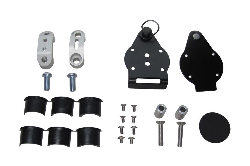 Stabilný, bezpečný a praktický rýchlouzáver pre montáž na riadidlá. Pripojenie k vozidlu preberá priložená svorka. Vďaka dodávaným dištančným pološkrupinám sa hodí pre všetky priemery rúr od 20 do 28,5 mm.