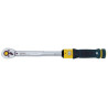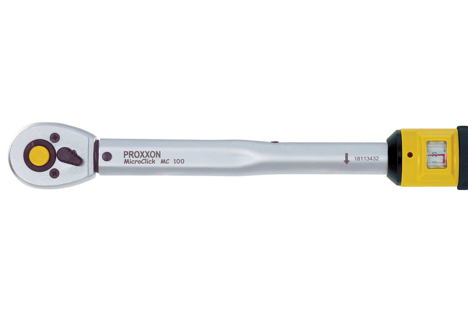 Momentový kľúč s mikroklikom s račňou a vysokou presnosťou podľa DIN/ISO. Veľká, dobre čitateľná stupnica pre nastavenie požadovaného krútiaceho momentu otáčaním ryhovaného posuvného krúžku na konci rukoväte.