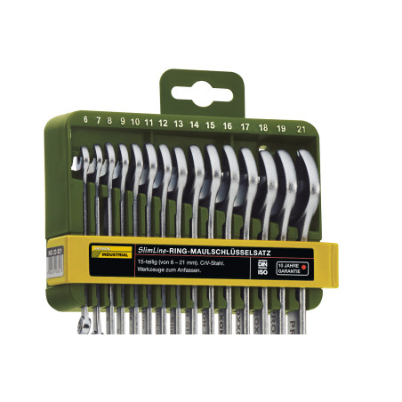 Sada kombinovaných kľúčov SlimLine, 15 kusov. S novými veľkosťami ISO 16, 18 a 21 mm.