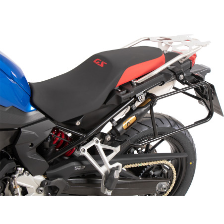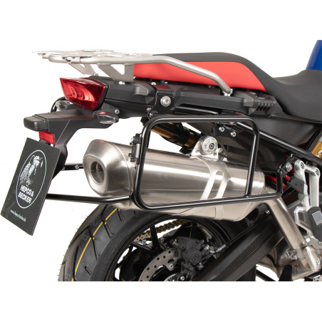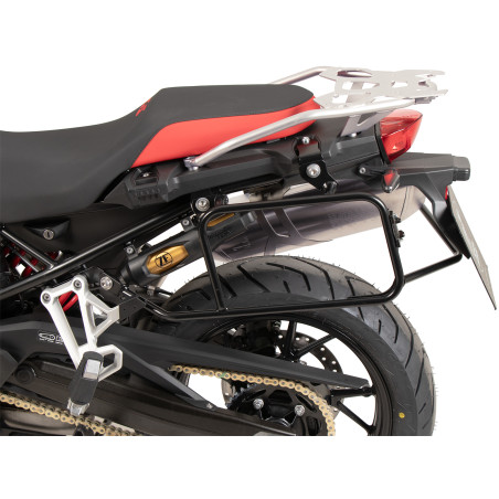 Asymetrický bočný nosič. Odporúčanie: použite užšie puzdrá na strane výfuku. napr. 30 l & 40 l v kombinácii.