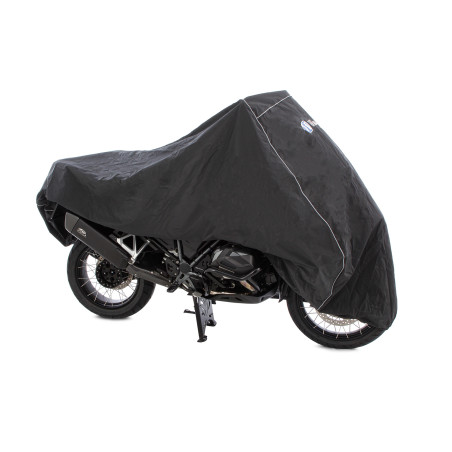Tri nastaviteľné západky umožňujú individuálne nastavenie šírky v zadnej časti - sú ľahko prístupné v hornej časti krytu - takže motocykel môže byť uložený pod plachtou s kufrom alebo bez neho