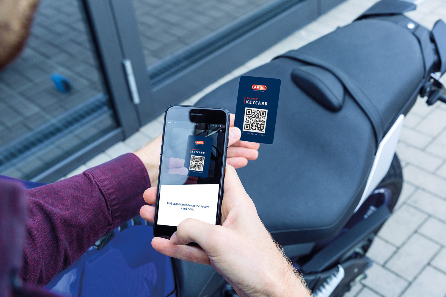 Zámok vám môže uľahčiť každodenný život tým, že iným ľuďom dá povolenie na otvorenie zámku prostredníctvom aplikácie ABUS One. To umožňuje rodinným príslušníkom, kolegom alebo priateľom bezpečne jazdiť na motocykli domov, ak ho nechcete nechať bez dozoru.