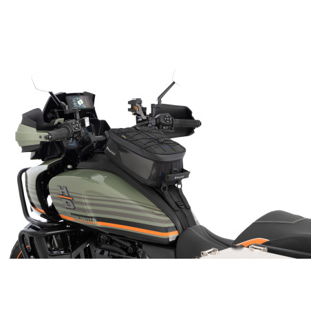Objednajte si samostatne zodpovedajúci držiak systému 90401-000, na ktorom je bezpečne pripevnený váš vak na palivovú nádrž ELEPHANT TOUR a ktorý chráni farbu nádrže.
