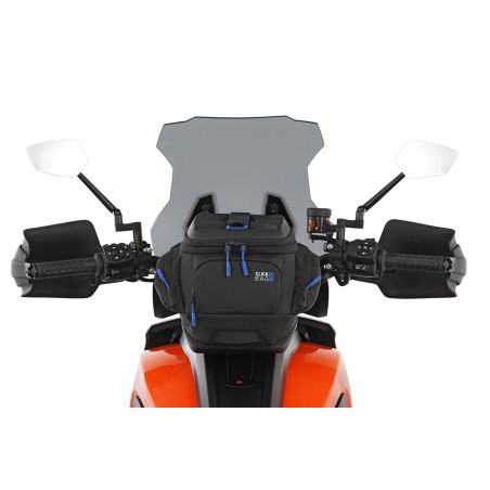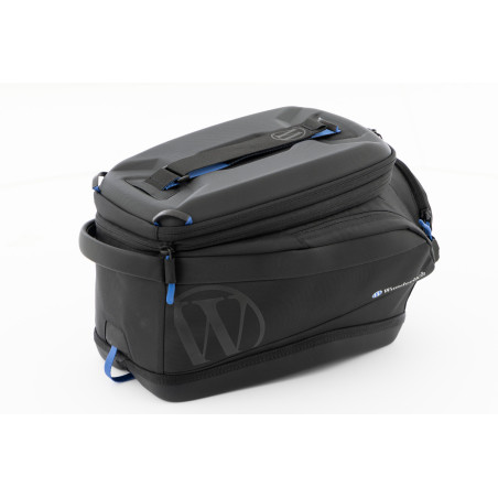 Vonkajší materiál je vodoodpudivý. Vodotesnú batožinovú tašku vybavenú rolovacím uzáverom je možné zapínať do tašky na palivovú nádrž. Je modrá, a preto poskytuje dobrý kontrast a prehľad o obsahu.