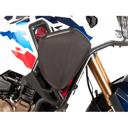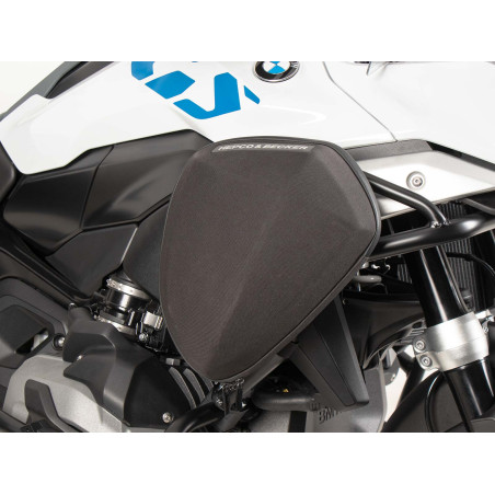 Dodatočný úložný priestor na motore a nárazníkoch na nádrži pre predmety, ktoré sa nezmestia do tankvaku, ale mali by byť stále ľahko dostupné. Jednoducho nasuňte predmet na nárazník a bezpečne ho pripevnite pomocou suchého zipsu po celej ploche.