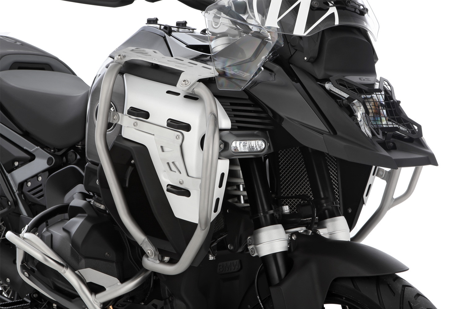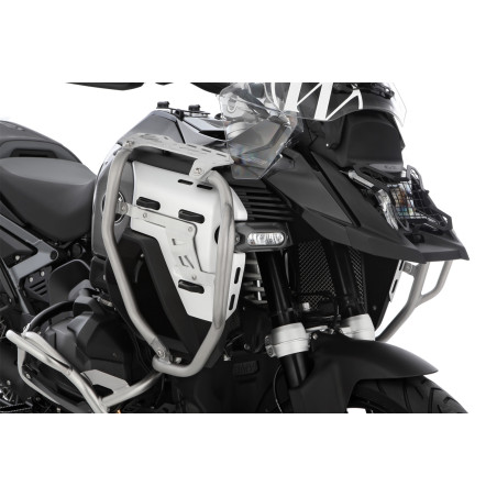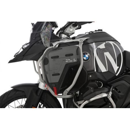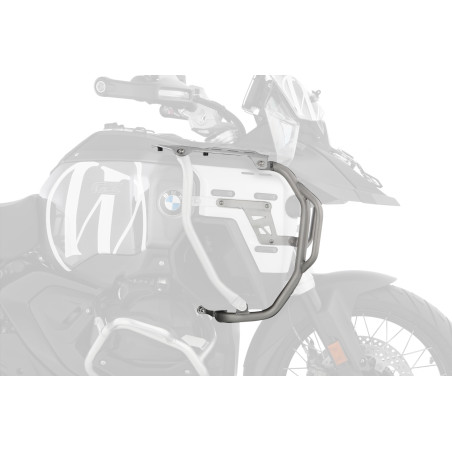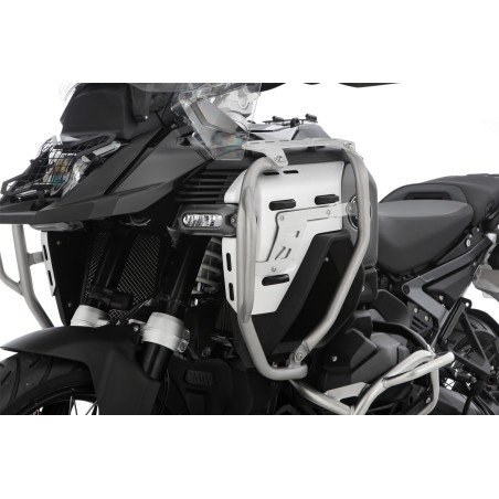 Táto ochranná lišta na nádrž Wunderlich ULTIMATE je špeciálne navrhnutá pre dobrodružnú jazdu a nielenže spoľahlivo chráni nádrž, ale aj kapotáž, predstavec a vysoko zraniteľné jednotky vodného chladiča. V spojení s ochranou proti prevráteniu Wunderlich tvorí premyslenú koncepciu všestrannej ochrany pre pasívnu bezpečnosť: V prípade pádu alebo prevrátenia sa pôsobiace sily optimálne rozložia cez konštrukciu ochrannej tyče do pružných upevňovacích bodov, čím sa znížia špičky síl a momentov. Vizuálne je ochranná lišta integrovaná do dizajnu Adventure a podčiarkuje jej výrazný vzhľad. Ochranná lišta nádrže je vyrobená z kompozitu 25 milimetrových presných rúrok z nehrdzavejúcej ocele. Rúrkové segmenty sú tvarované na CNC ohýbačkách rúr a následne čisto zvarené.