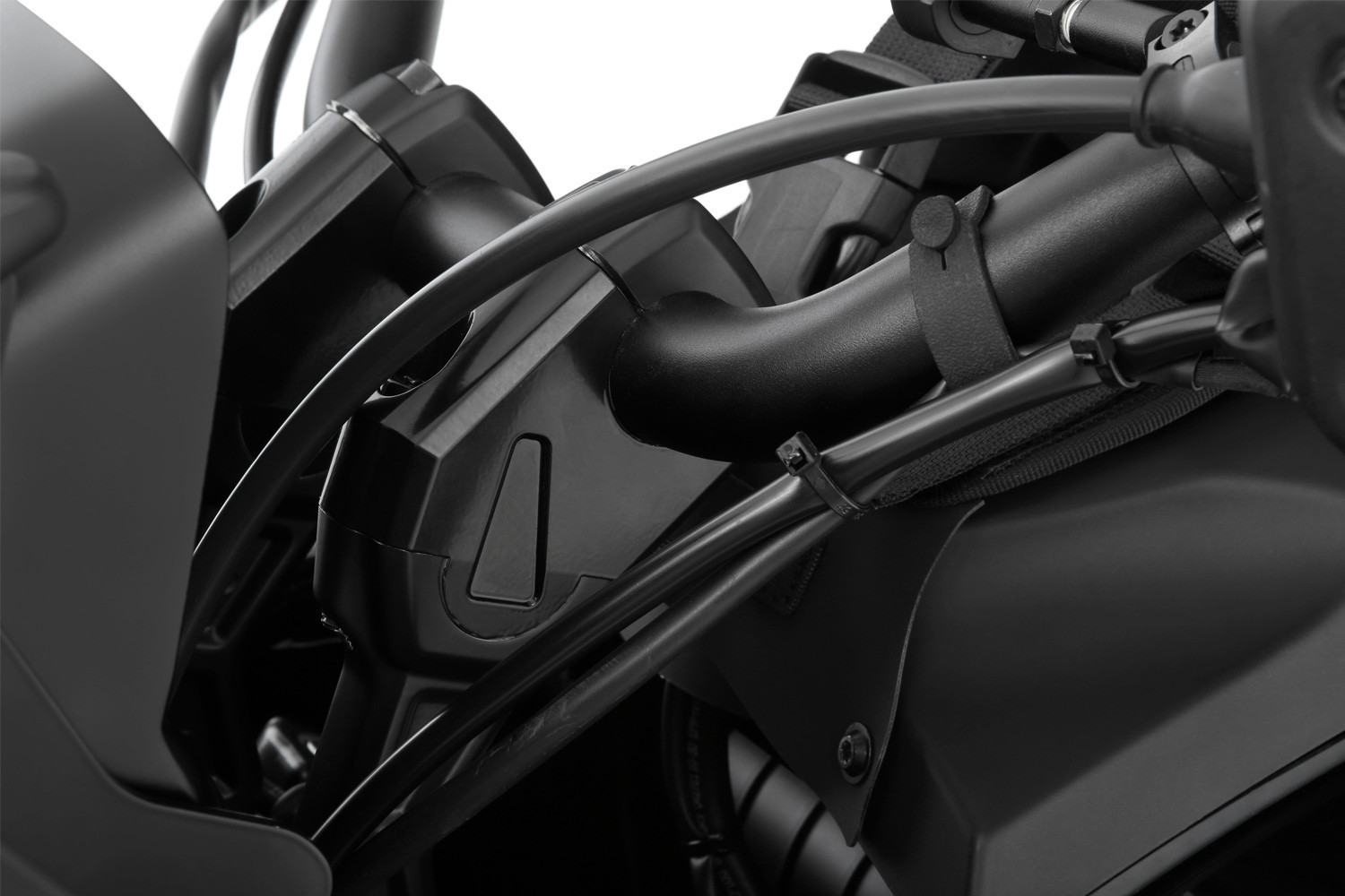 Zdvihák riadidiel ERGO+ zdvíha riadidlá vyššie bližšie k jazdcovi, aby sa ergonomicky odľahčili chrbtové svaly, panva/kostrč a ruky. To výrazne zlepšuje vhodnosť na cestovanie a výhľad na cestnú premávku. Jednoduchá, minútová konverzia bez ďalších úprav. Vďaka vylepšeným možnostiam nakláňania riadidiel je možné polohu sedadla individuálne ešte vylepšiť.