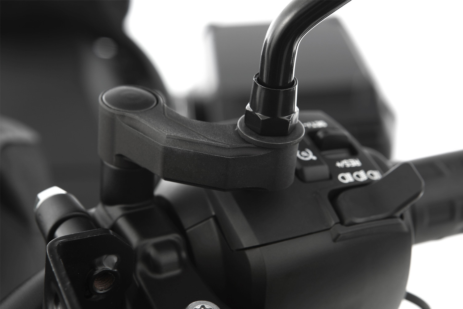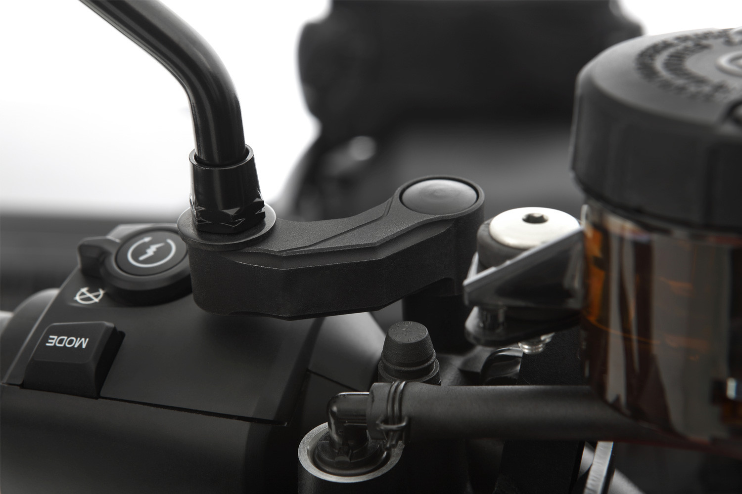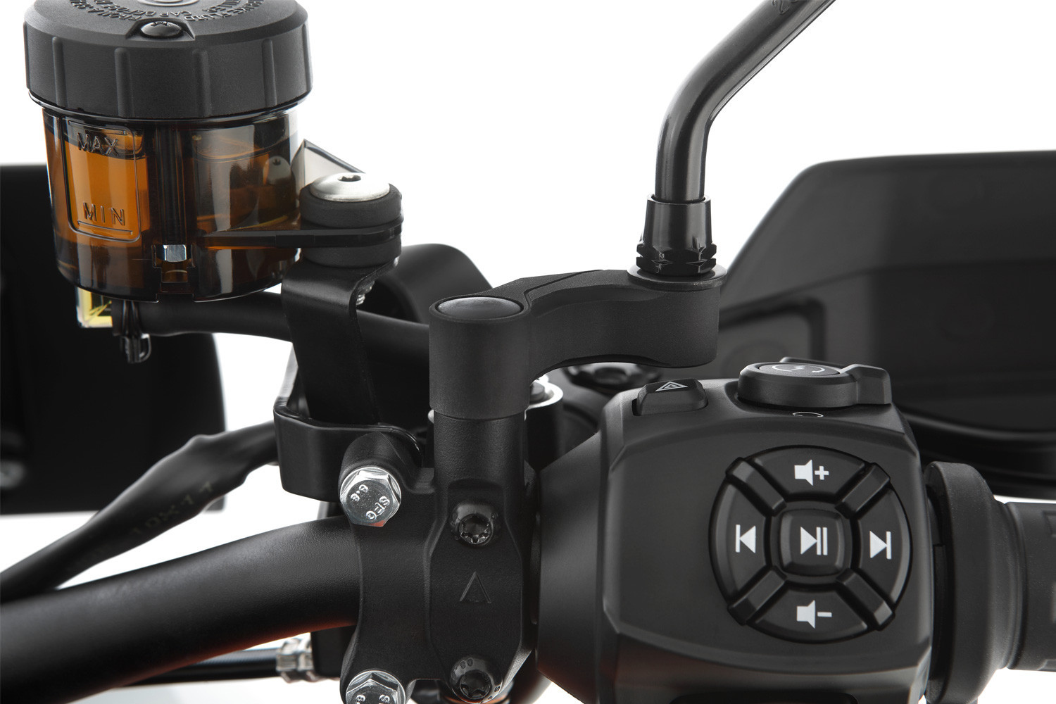 Spätné zrkadlá na motorkách sú naozaj užitočné len vtedy, ak v nich niečo vidíte. Najmä s hrubšími bundami vidíte všetko okrem nasledujúcej premávky. Tento nedostatok odstránime a zrkadlá vrátime do správnej polohy. Desaťročia existovalo mnoho rôznych riešení. Zrkadlo však umiestňujeme smerom von a zároveň dopredu, čím je rozširovanie diskrétnejšie, no o to efektívnejšie. Odsadenie zrkadla je presne padnúce a krásne tvarované do sériového dizajnu a prináša veľké plus v oblasti bezpečnosti.