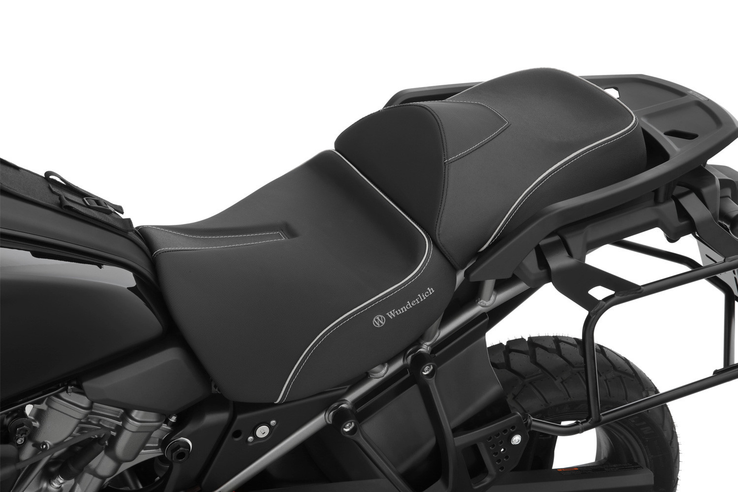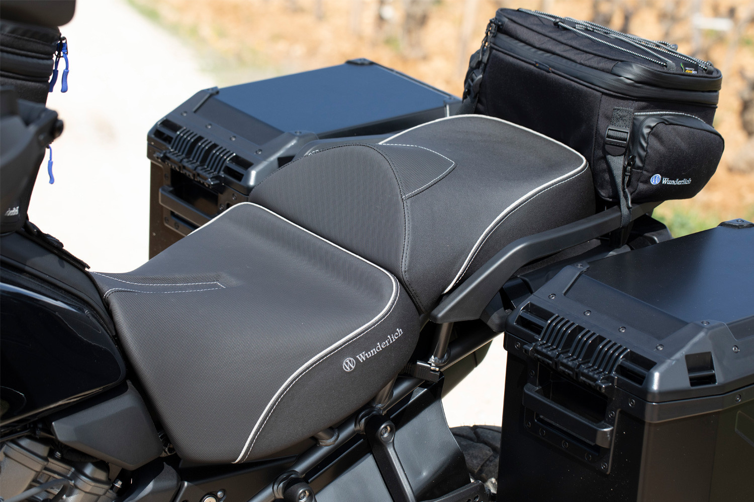 Naše sedadlá vyrábame s charakteristickým, ergonomickým 3D obrysom, ktorý umožňuje jazdcovi splynúť s jeho motocyklom. Tvar a sklon náročne vypracovaného jadra sedu podporuje ergonomické, výhodné, prirodzené držanie panvy. Takto integrovaným spôsobom je ľahké jazdiť uvoľnene, a teda aktívne. A niet pochýb o tom, že uvoľnené sedenie vytvára plus z hľadiska pasívnej bezpečnosti. S našimi Thermo Pro lavicovými sedadlami pre vodiča a spolujazdca je teplota povrchu sedadla počas leta na páliacom slnku až o 25 °C nižšia v porovnaní s bežným poťahovým materiálom. V našom sortimente máme zodpovedajúce sedadlo spolujazdca.