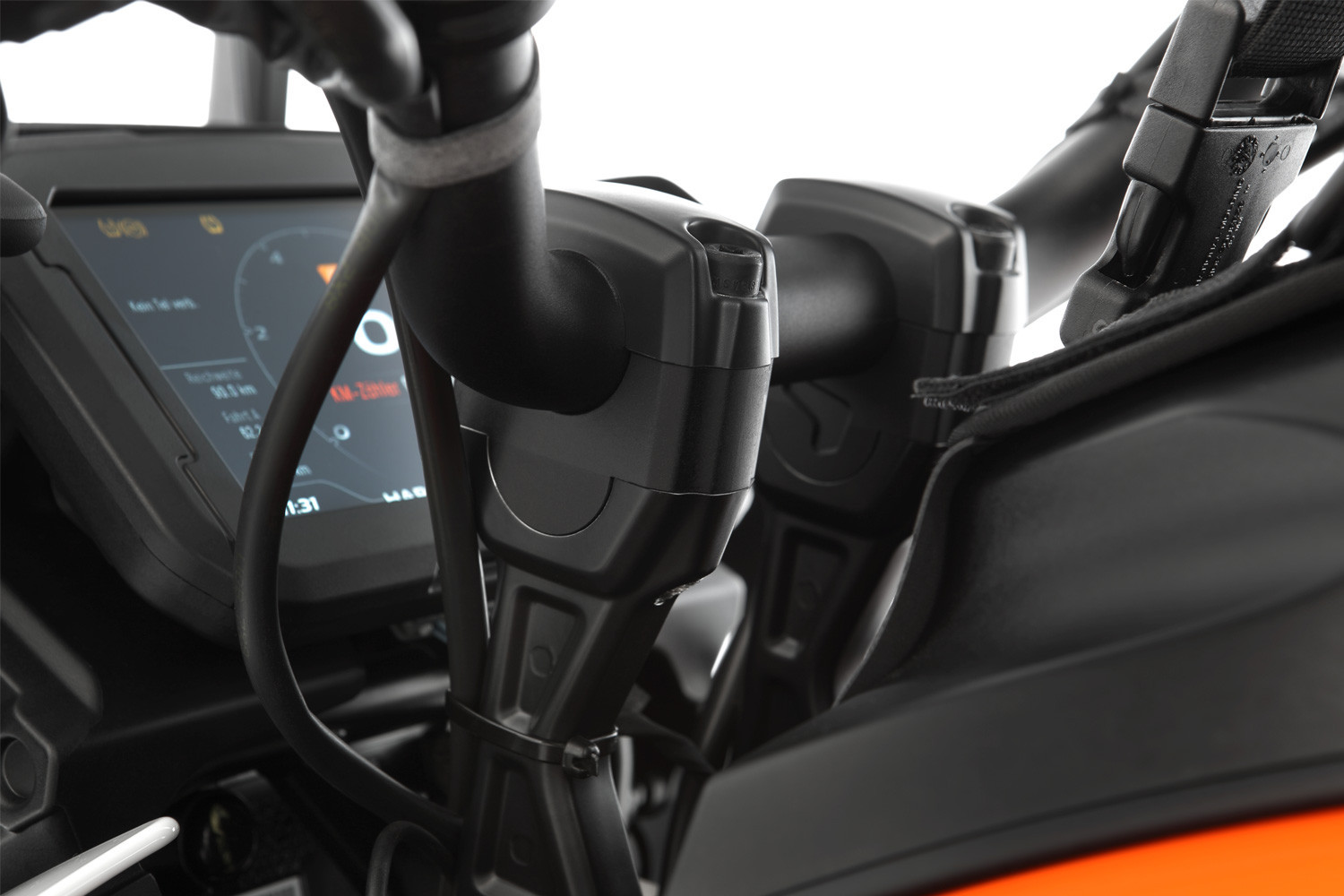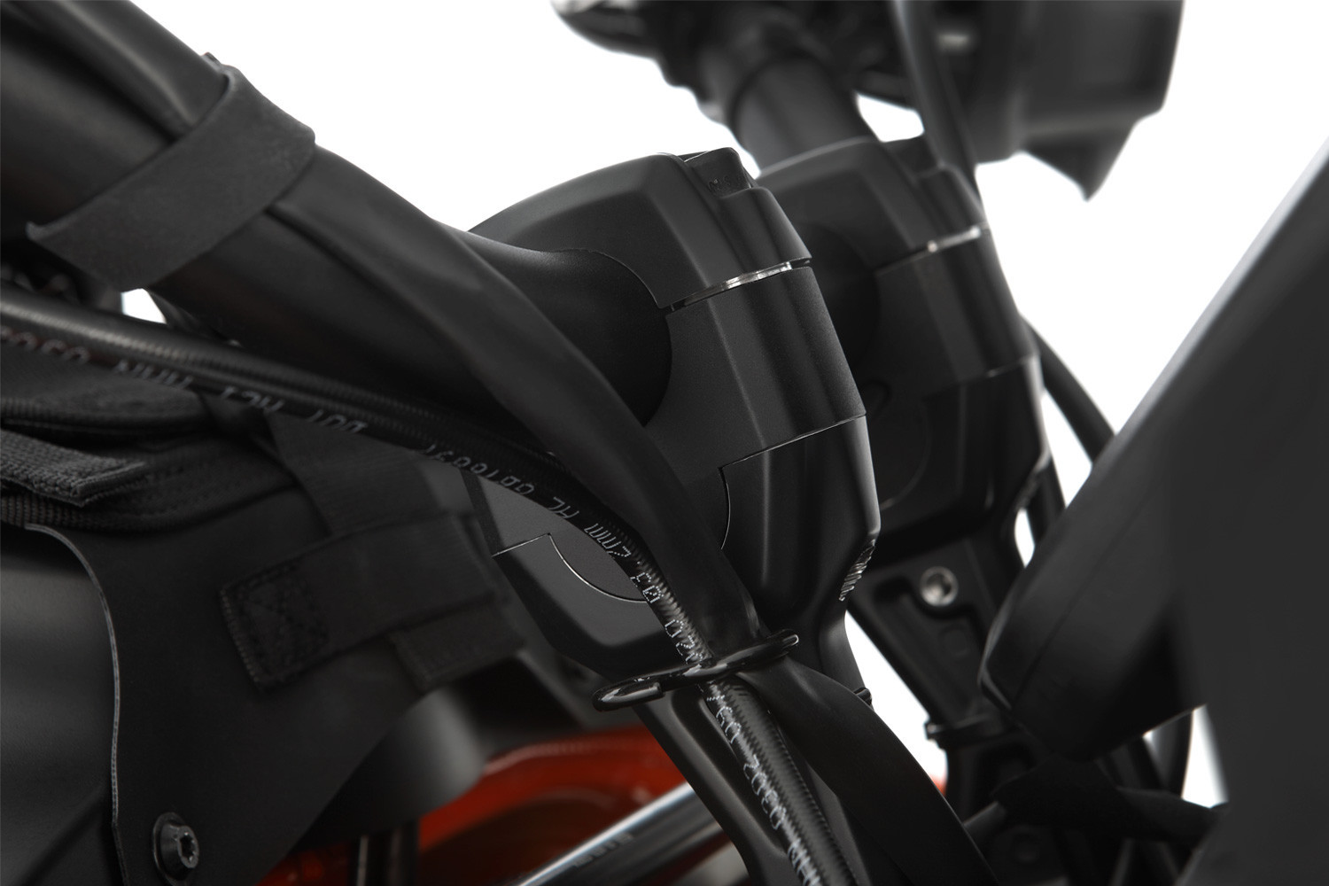 Nášimi vývojármi špeciálne navrhnuté stúpačky riadidiel zdvíhajú riadidlá mierne o 25 mm. Ergonomické účinky sú značné, pretože pôsobia uvoľňujúco na celé chrbtové svalstvo a paže a zároveň odľahčujú chrbticu, panvu a kostrč. To výrazne zlepšuje vhodnosť na turistiku a pohodlie. A uvoľnená jazda zaisťuje plus v pasívnej bezpečnosti, rovnako ako lepší prehľad o dopravnej situácii, ktorý je výsledkom vzpriamenejšej polohy sedenia.
