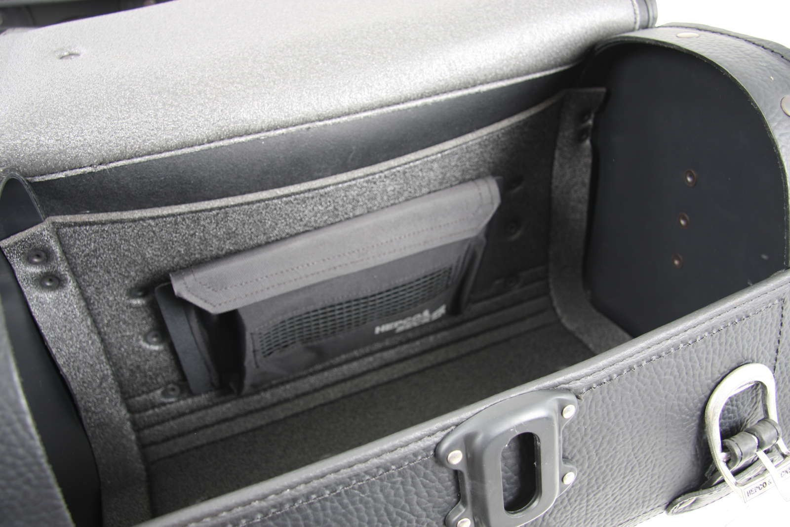 Kvalitná kožená zadná taška na pripevnenie pásov k nosičom batožiny alebo zadným predĺžením.