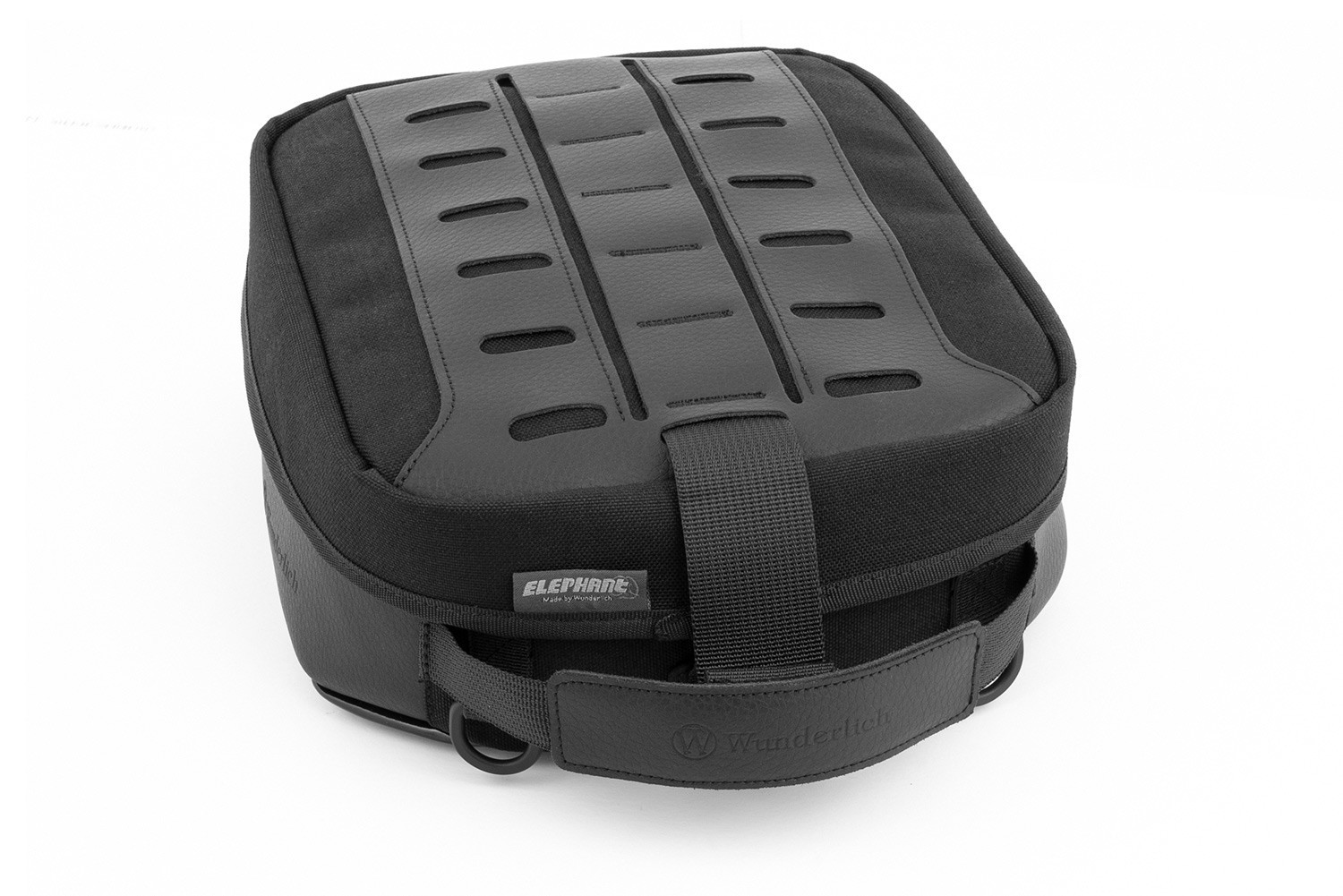 Veko ELEPHANT CLASSIC ponúka ďalšiu štrbinu na vnútornej strane a systém uchytenia ďalších vreciek (vreciek na pripevnenie) porovnateľný s vojenským systémom Molle na vonkajšej strane. Veko, ktoré zakrýva zips hlavného priestoru, je vybavené praktickým háčikom. Spodná strana ELEPHANT CLASSIC pozostáva zo špeciálne priľnavého a osvedčeného materiálu, ktorý prilieha k nádrži a zabraňuje skĺznutiu nádrže.