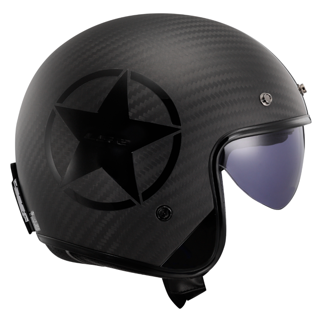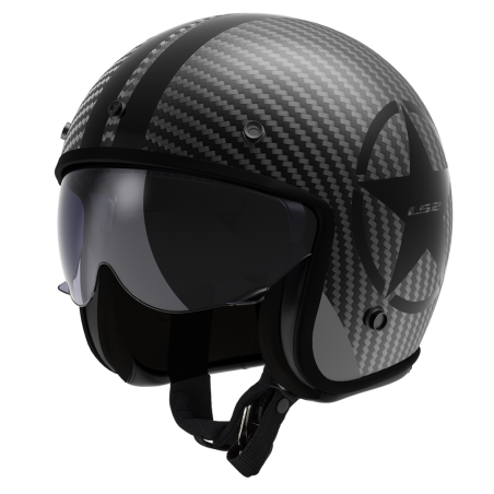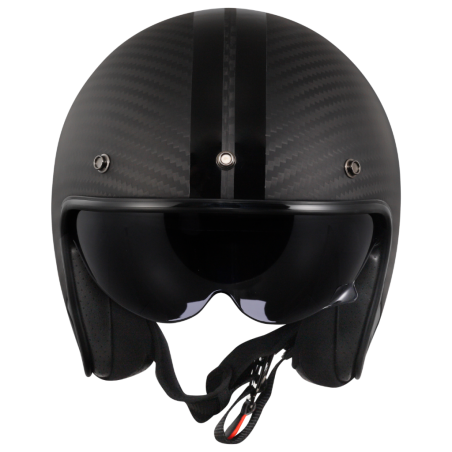 Ľahká otvorená prilba v jedinečnom vintage vzhľade, ideálna pre custom motocykle, café racer, choppery a retro skútre. Integrovaná slnečná clona chráni vaše oči pred ostrým slnkom. Škrupina vyrobená z krížovo tkaných uhlíkových vlákien dáva prilbe mimoriadne vysokú odolnosť proti nárazu. Prémiová helma za dostupnú cenu je dodávaná vrátane ľahko odnímateľného slnečného šiltu