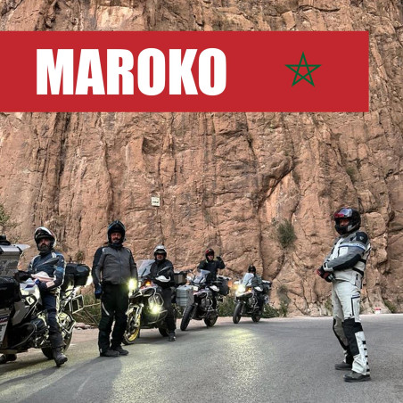 Maroko je trip na ktorom si na svoje prídu skúsený jazdci, ktorý milujú celý deň v zákrutách, občasné horšie cesty s prachom a sem tam nejaký ľahký terén( oprava ciest alebo prejazd k pamiatkam a turistickým atrakciam). Každý večer Nás čaká gastronómia a bohatá kultúra miestnych hotelov a destinácii. Nevynecháme ani výlet na 4x4 vozidlách na Saharu kde si môžete vyskúšať snowboard na dunách a večer s berbermi pri ohni za zvukov bubnov a domorodých hudobných nástrojov.