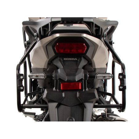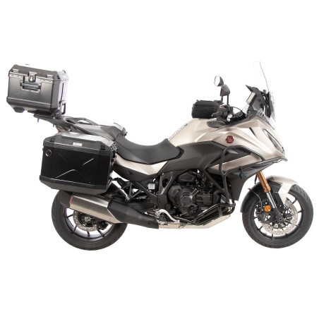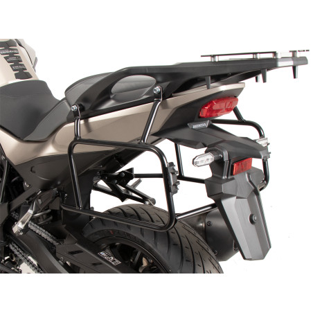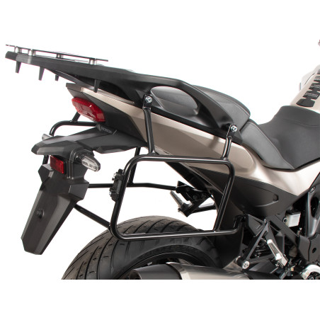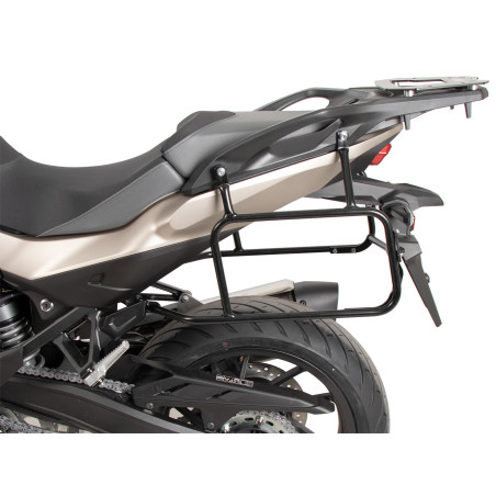 Pevne priskrutkované nosiče bočných kufrov od Hepco & Becker sú pevne spojené s rámom motocykla. Na tento nosič pasujú takmer všetky turistické systémy bočných kufrov od Hepco & Becker . Puzdrá sú na nosiči zaistené pomocou kovového zámku proti krádeži. Na to je potrebný ďalší adaptér zámku . To je zvyčajne zahrnuté v rozsahu dodávky bočných kufrov. Tento adaptér zámku je priskrutkovaný na pravú a ľavú zadnú časť nosiča a poskytuje držiak pre zámok puzdra.
