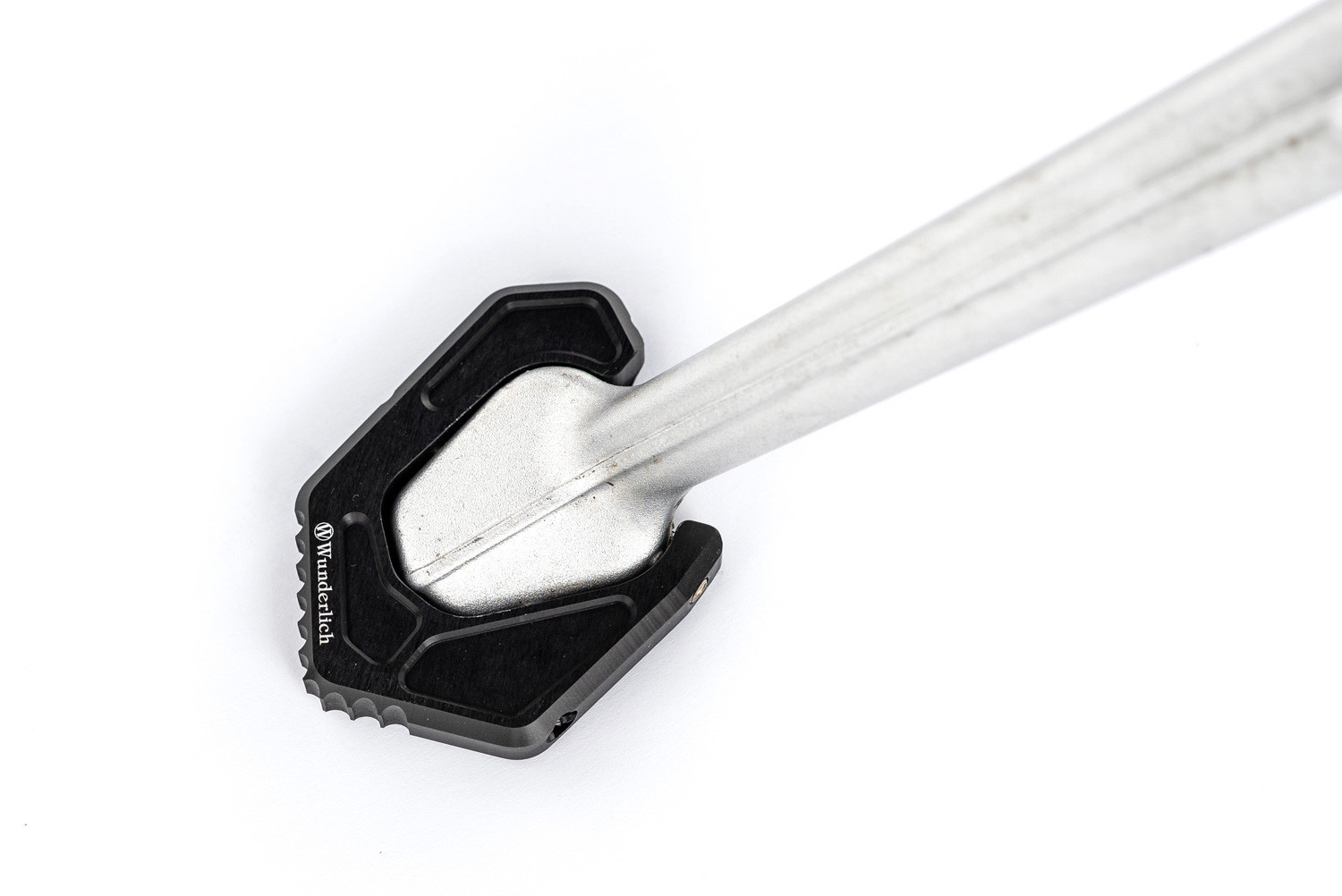 Predĺženie podpory bočného stojana Životné poistenie pre vaše BMW: Vzhľadom na to, že kontaktná plocha pôvodného bočného stojana je príliš malá, existuje riziko, že sa vaše BMW pomaly – často nepozorovane – zaborí ako na rozpálenom dechtovom povrchu, tak aj na len mierne zmäkčenej zemi. . V najhoršom prípade sa stroj prevráti. Výsledkom je často nepríjemné poškodenie. Napraviť to môže náš precízne vyfrézovaný podporný nástavec, ktorý sa jednoducho naskrutkuje na bočný stojan a účinne eliminuje túto konštrukčnú chybu. A aby sa bočný stojan dal bezpečne vyklopiť pätou topánky, zabudovali sme protišmykové vonkajšie zuby. Fakty: funkciu Bezpečný stojan vášho motocykla na akomkoľvek povrchu Zdvojnásobenie nosnej plochy Väčšia kontaktná plocha výrazne znižuje riziko potopenia Kompenzuje nepriaznivé parkovacie uhly Bezpečné rozkladanie vďaka protišmykovým, protišmykovým zubom Zabraňuje drahým následným škodám, je nenápadný a nápomocný Odolná ochrana proti oxidácii vďaka čiernemu eloxovanému povlaku Presné frézovanie pre originálny bočný stojan Diskrétne, nenápadné skrutkové spojenie s 3 závrtnými skrutkami S tlmiacou vrstvou penovej gumy Ľahko sa pestuje Technické špecifikácie Materiál: 8 mm hrubý, vysokopevnostný hliník, presne vyfrézovaný z masívneho bloku Čierna eloxovaná osobitosti Nádherný prémiový produkt. Malá séria. Vyrobené ručne Rozmarný dizajn. Integrovaný a funkčný.