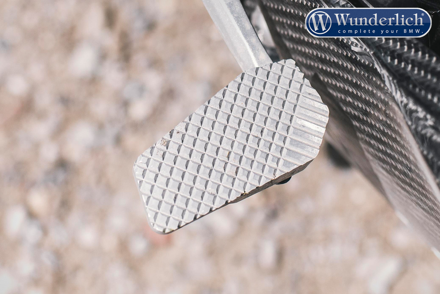 V origináli je nášľapná plocha brzdovej páky bohužiaľ trochu malá a často predstavuje bezpečnostné riziko.Kĺzanie alebo šliapanie do prázdna je s týmto zväčšením brzdovej páky minulosťou. Tiež vizuálna lahôdka, ktorá zušľachťuje páku so športovým nádychom. Náročne frézované a eloxované. Ľahké pestovanie.