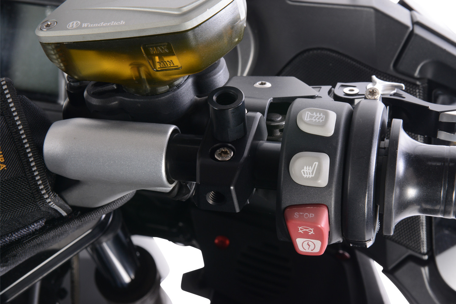 Držiak na akékoľvek zrkadlo na riadidlá (odporúčame naše zrkadlo FLASH, keďže je možné nastaviť aj šírku)