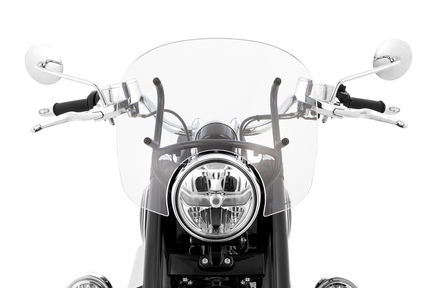 Tabuľa je dimenzovaná tak, aby horná časť tela bola oslobodená od zaťaženia vetrom. Aerodynamika zabezpečuje príjemné laminárne prúdenie vetra. Kvalitné spracovanie je na prvý pohľad vidieť cez sklo odolné proti poškriabaniu, benzínu a UV žiareniu s hrúbkou 5 mm: jasný výhľad, bez skresľujúcich optických chýb, ktoré dráždia. Ďalšia ochranná známka: ručne leštená celoobvodová hrana tabule, vďaka ktorej je samostatná ochrana hrán zbytočná. Len tak môže tabuľa okrem aerodynamických výhod a zníženia hluku vetra ponúknuť nerušený výhľad dopredu. To všetko umožňuje ležérne, mimoriadne uvoľnené a vzpriamené sedenie – s jasným výhľadom na hornú hranu nastaviteľnej tabule.