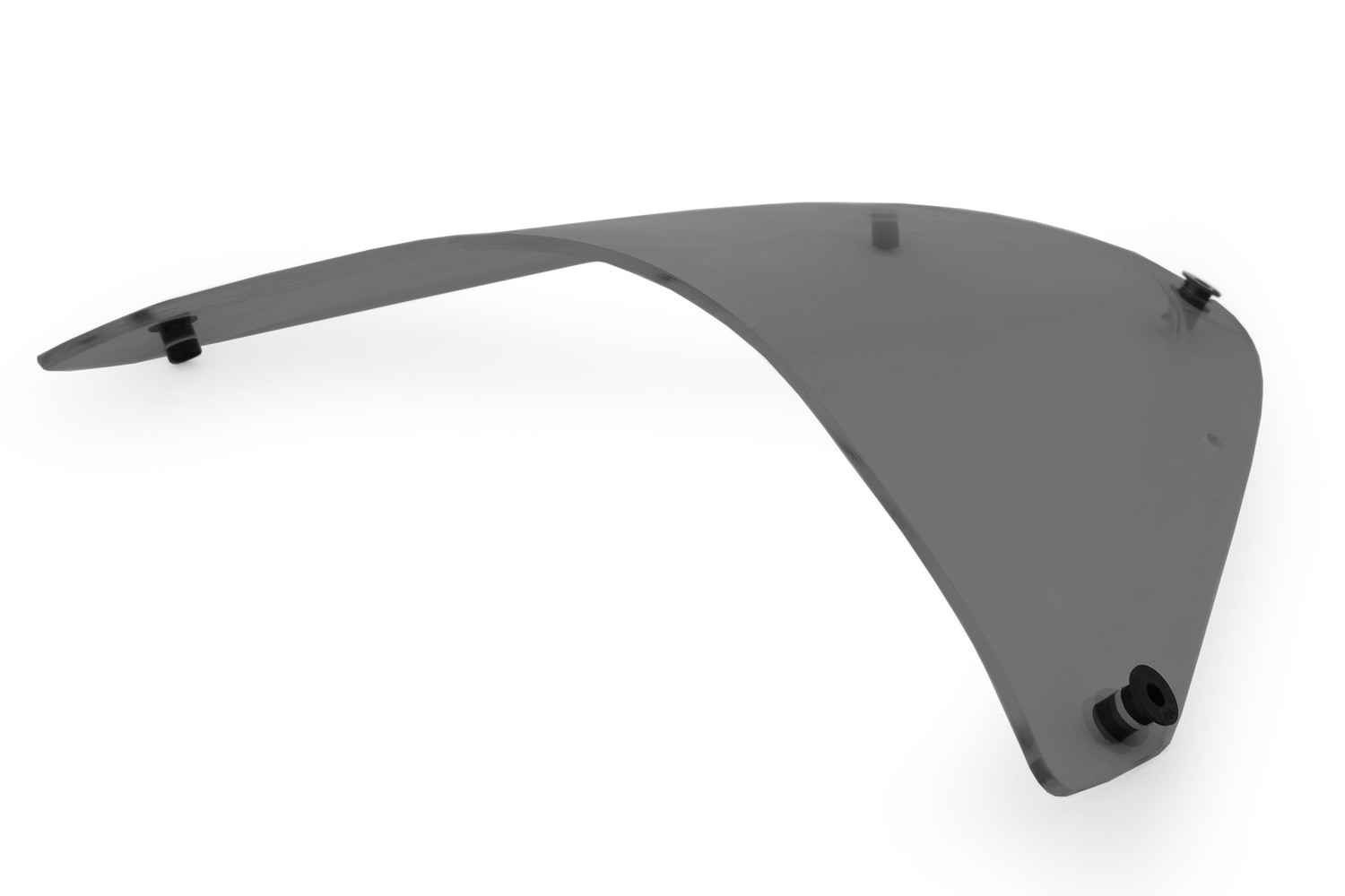 Integrovaná, aerodynamicky dokonale vyladená šošovka spolu s maskou lampy zaisťuje optimalizované laminárne prúdenie. Hrúbka disku päť milimetrov znamená mechanickú a aerodynamickú stabilitu aj pri najvyšších rýchlostiach. Naše typické, vysokokvalitné spracovanie materiálu PMMA odolného proti poškriabaniu a rozbitiu je možné rozpoznať pri pohľade cez neho: jasný pohľad bez skresľujúcich optických chýb, ktoré sú dráždivé. Ďalšia ochranná známka: ručne leštené, zaoblené hrany, vďaka ktorým je samostatná ochrana hrán zbytočná. Fakty: funkciu Správny disk pre našu masku Rock 'n' Roll lampy Športový úzky tvar, ktorý sa zvažuje nízko k vodičovi Dymovo šedý odtieň Optimalizovaná aerodynamika Jasný výhľad bez skreslenia optických chýb Leštená/zaoblená hrana (nie je potrebná ochrana hrán atď.). Jednoduché pestovanie Vrátane montážneho materiálu a návodu na montáž Technické špecifikácie: Materiál: Veľmi kvalitný, opticky čistý, vysoko pružný plast PMMA odolný voči poškriabaniu, UV žiareniu a benzínu pre optimálny výhľad Rozmery: Šírka: 325 mm Výška: 320 mm Hĺbka: 80 mm Hrúbka komponentu: 5 mm S ABE Špecifiká: Nádherný prémiový produkt. Malá séria. Vyrobené ručne. Rozmarný dizajn. Integrovaný a funkčný.