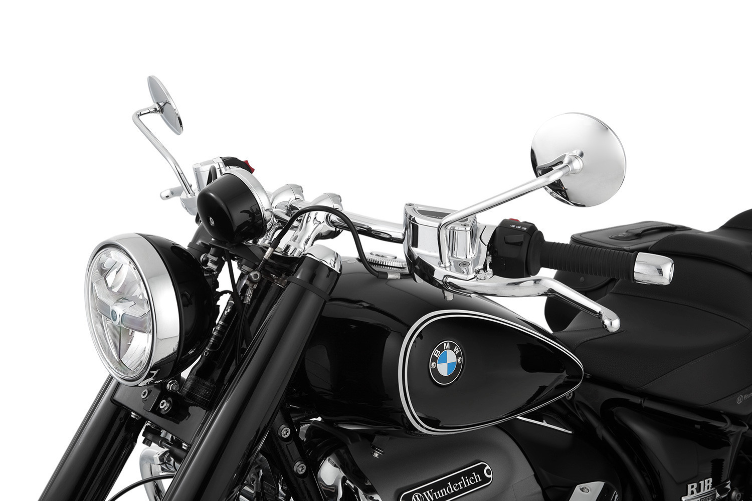 Na riadidlách DRAG BAR sa nielen perfektne jazdí, ale ponúka vám bezpečnú ovládateľnosť a predklonený športový posed. Konce rukoväte sú minimálne zalomené smerom k vodičovi. Takže budete mať svoju R 18 vždy pod kontrolou, na 1/8 míle, pri jazde aj pri manévrovaní. Nápadné riadidlá vyrobené z imperiálnych, vysokokvalitných, pochrómovaných presných oceľových trubiek dodajú vášmu Big Boxerovi nový, jedinečný vzhľad. Káble k armatúram a smerovkám sa navyše dajú schovať do trubiek riadidiel tak, aby boli pre oči neviditeľné. Potrebné otvory sú už pripravené. Originálne závažia koncov tyče je možné naskrutkovať do koncov tyče. Vnútorné závity tam už sú.