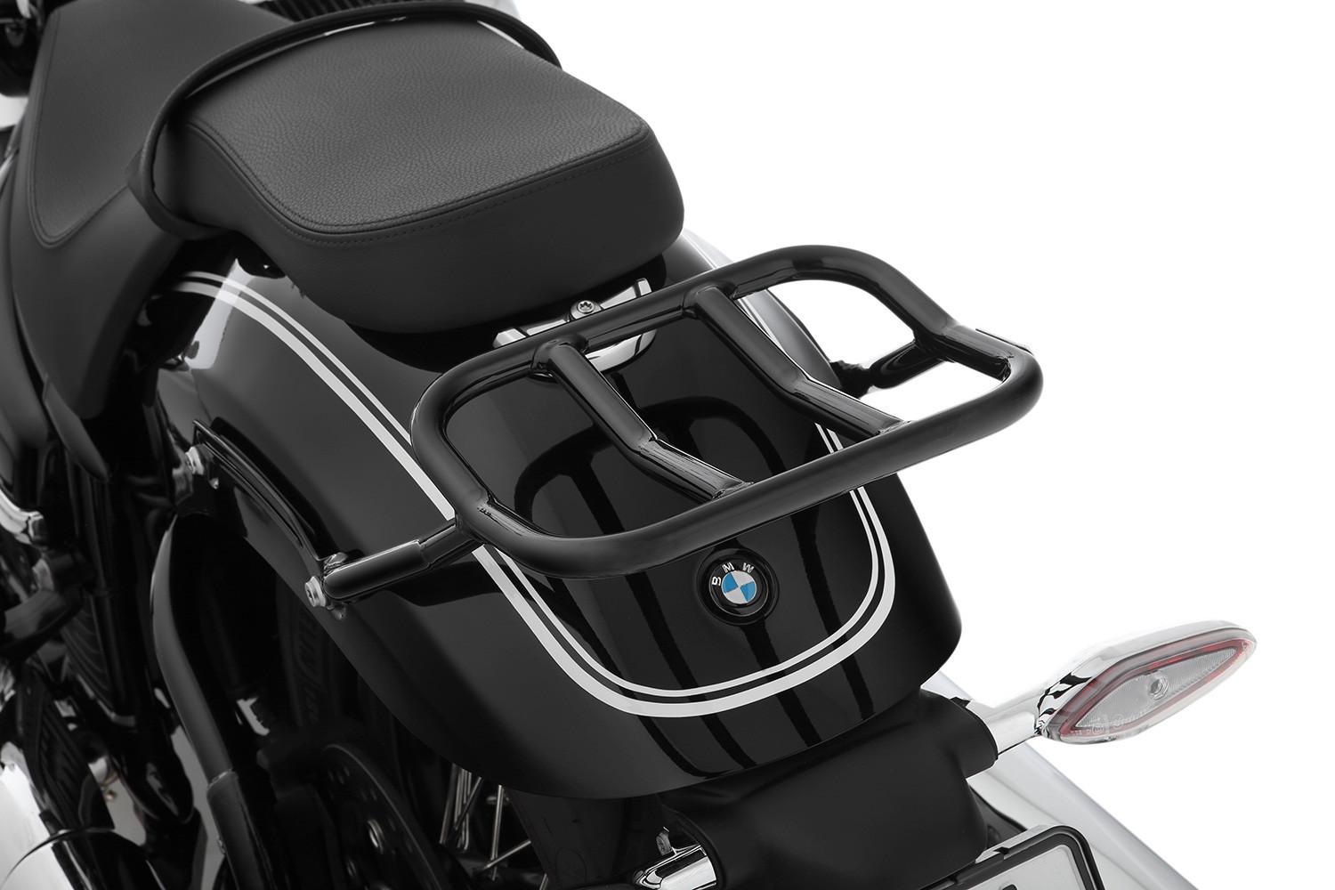 Pri cestovaní ukazuje svoj potenciál v kombinácii s našimi bočnými a sedlovými taškami – alebo tými od BMW – a berie na seba ďalšiu batožinu. Umiestnenie blízko ťažiska podporuje dobromyseľné, neutrálne ovládanie BMW R 18.