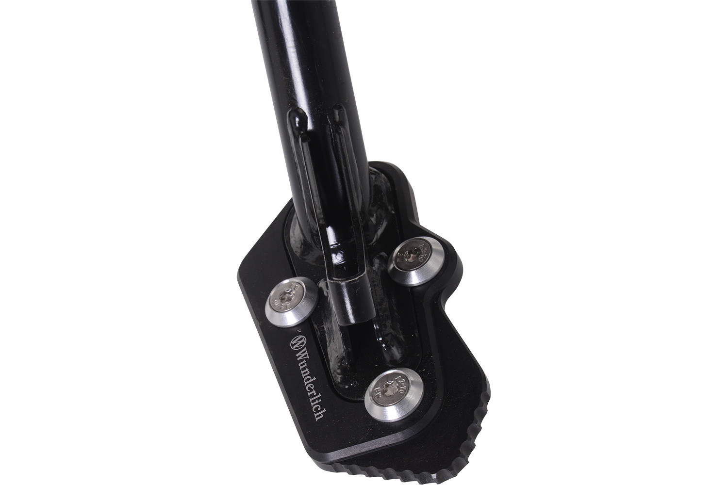 Doplnkové poistenie pre BMW : BMW hrozí , že sa na bočnom stojane ľahko potopí. Presne vyfrézovaná rozperná doska, ktorá sa rýchlo priskrutkuje k bočnému stojanu a zbaví BMW tohto nebezpečenstva. Fakty, rozšírenie bočného stojana Wunderlich: O viac ako 100% väčšia kontaktná plocha S vonkajšími zubami pre ešte jednoduchšie skladanie z bočného stojana  Bočný stojan vhodný pre:  BMW R 1200/1250 RT LC Bezpečné postavenie stroja na všetkých povrchoch Osem milimetrov hrubý, vysoko pevný hliník Antioxidačný čierny elox Ochrana proti hrdzi pre pôvodnú kontaktnú plochu Výrez pre originálnu podložku navrhnutý s penovou gumou, ktorá absorbuje vibrácie CNC frézované Ľahké pestovanie