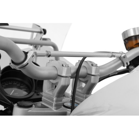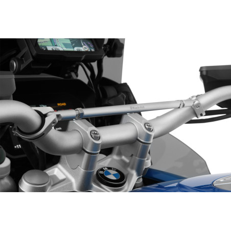 Kvalitná strieborná stredová výstuha riadidiel vyrobená z hliníka má priemer 12 milimetrov a povrch je otryskaný sklenenými perlami. Okrem vylepšenia vzhľadu poslúži aj ako perfektný základ pre uchytenie príslušenstva. Stredová vzpera je pripevnená k riadidlám pomocou elastických redukčných objímok, takže vzpera a riadidlá sú oddelené. To znamená, že najmä elektronické zariadenia môžu byť pripevnené spôsobom s tlmením vibrácií.