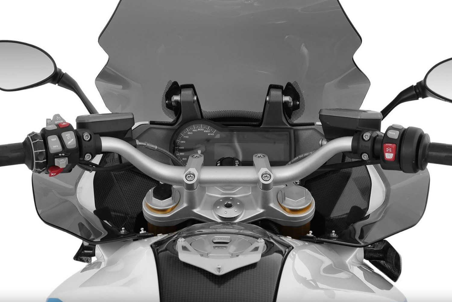 Ergonomicky ohnuté a mierne širšie rúrové riadidlá ako náhrada za štandardné riadidlá BMW. Poloha posedu je nielen príjemnejšia, ale riadiace prvky tiež pôsobia exkluzívne a praktickejšie.