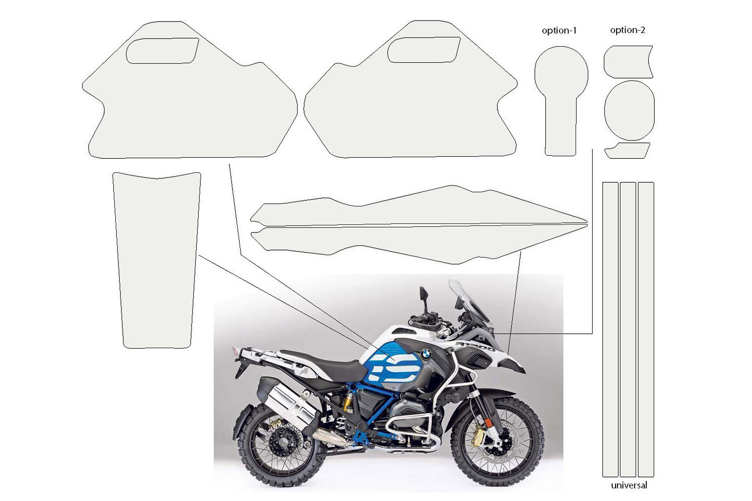 Nezničiteľný, flexibilný adhezívny film na ochranu nádrže a plastov. Pre R1200GS Adventure LC.