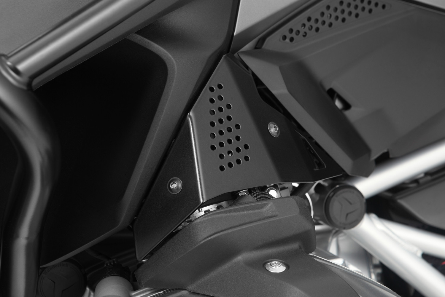 Kryt vstrekovacieho systému chráni oblasť sacieho potrubia vrátane vstrekovacieho potrubia, prípojok potrubia a snímača škrtiacej klapky. Znovu a znovu dochádza k netesnostiam v zástrčkových spojoch, ktoré možno vysledovať späť k zvýšenému zachyteniu topánok alebo nohavíc. S týmto ochranným krytom z eloxovaného hliníka to už nie je možné. Okrem toho chráni pred manipuláciou so zástrčkami a konektormi.