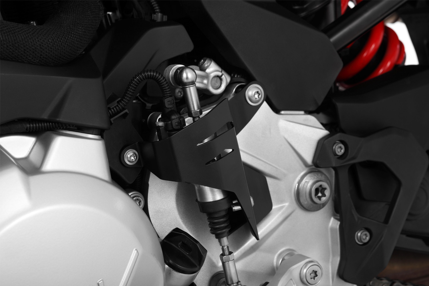 Pevná mechanická ochrana pre asistent radenia, ktorý pôsobí svojím dizajnom veľmi športovo a zapadá tak do dizajnu GS. Vysoká úroveň ochrany vyplýva z tuhosti skladaného, ​​čiastočne perforovaného 2 mm hliníkového plechu. Obnažený drahý asistent radenia rámuje decentným trojbodovým uchytením a bezpečne ho chráni. To spoľahlivo znižuje riziko poškodenia asistenta radenia, najmä pri použití v teréne. Inštalácia je nekomplikovaná na tri existujúce, ľahko dostupné upevňovacie body na vozidle. Fakty: funkciu Pevná všestranná ochrana drahého a exponovaného asistenta radenia Odolná konštrukcia Kvalitné prevedenie Ľahká konštrukcia Technické špecifikácie Hliník, vysoko kvalitná povrchová úprava, eloxovaný Hrúbka materiálu 2 mm Kompletné s montážnou sadou Nie je potrebné žiadne ABE osobitosti Rozmarný. Integrovaný dizajn. Malá séria. Vyrobené ručne. Vyrobené v Nemecku