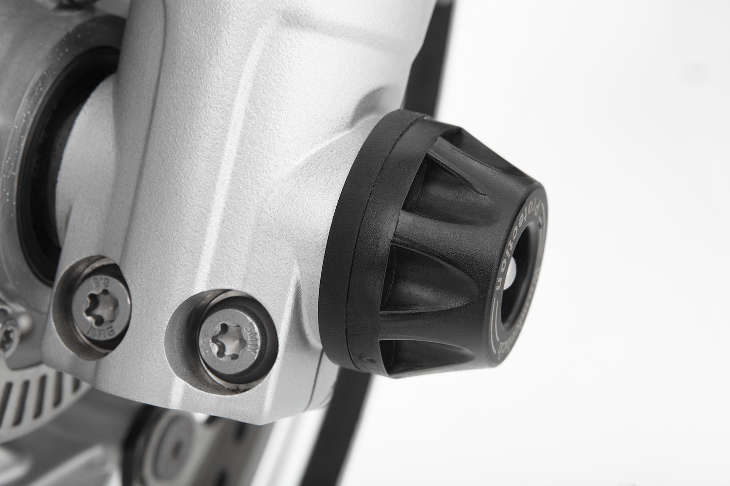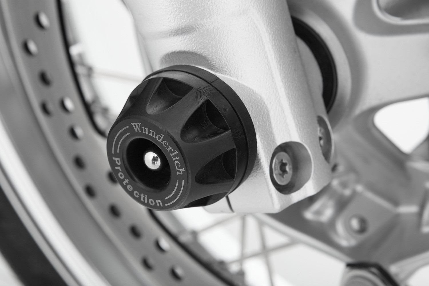 V prípade prevrátenia alebo pádu motocykla sa ochranné podložky náprav postarajú o účinnú ochranu vidlice, nápravy kolesa a brzdového systému pred poškodením.