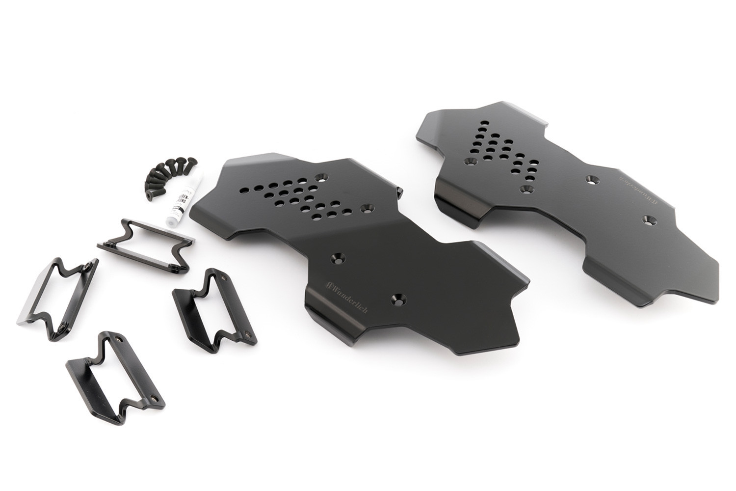 Tieto robustne vyrobené plniace dosky uzatvárajú medzeru medzi pôvodnými ochrannými tyčami motora a poskytujú extra stabilitu a bezpečnosť. Nekomplikovaná montáž ochranného systému z kvalitného hliníka prebieha priamo a je ľahko prístupná na ochrannej lište motora. Súčasti hrubé štyri milimetre, tvarovo priliehavé, nepohyblivé uchytenie s dvomi svorkami, z ktorých každá je dvakrát priskrutkovaná. To sú presvedčivé vlastnosti pre robustnú a odolnú konštrukciu, ktorá je ako ochranný štít. Dynamická forma je koherentne integrovaná do konceptu.