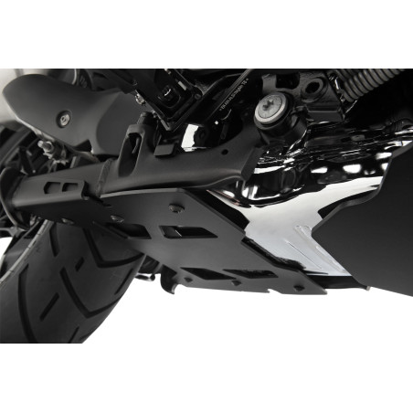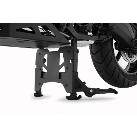 Ochranná doska hlavného stojana je logickým doplnkom ochrany motora ULTIMATE. Účinok ochrany pod podlahou je rozšírený z krytu motora smerom dozadu cez ochrannú dosku hlavného stojana. Týmto spôsobom znižujeme riziko poškodenia hlavného stojana, zberača (katalyzátora) a základne kyvnej vidlice pri jazde v teréne. Navyše, ak stroj pristane, môže sa kĺzať po celej ochrannej ploche, kým sa zadné koleso opäť nedostane do kontaktu so zemou a nezíska priľnavosť.