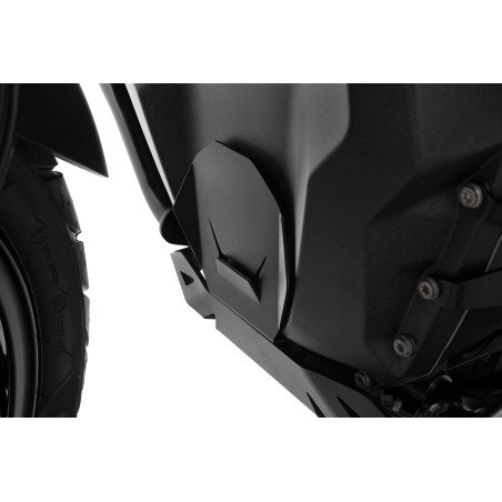 Na ochranu prednej časti krytu motora, hrude hrdinu, sme vyvinuli a prepracovane navrhli vysokokvalitný, presne tvarovaný ochranný kryt motora vyrobený z eloxovaného hliníka. Dobre navrhnutý tvar komponentov tiež zaisťuje vysokú mechanickú stabilitu - a zároveň je ľahký. Kryt spoľahlivo chráni pred kamienkami a nečistotami vyvrhnutými predným kolesom. Zabráni sa tým odletovaniu kamienkov a škrabancom na kryte motora. Ochranný kryt je pevne pripevnený k dvom existujúcim montážnym bodom a je preto optimálne integrovaný do konštrukcie. Ochranná a konštrukčná funkcia je týmto spôsobom dokonale kombinovaná, pretože ochrana krytu motora pôsobí ako ochranný štít a zároveň ešte viac vylepšuje dizajn motora. Ako obvykle sme sa hneď od začiatku postarali o to, aby sa vám kryt jednoducho namontoval.