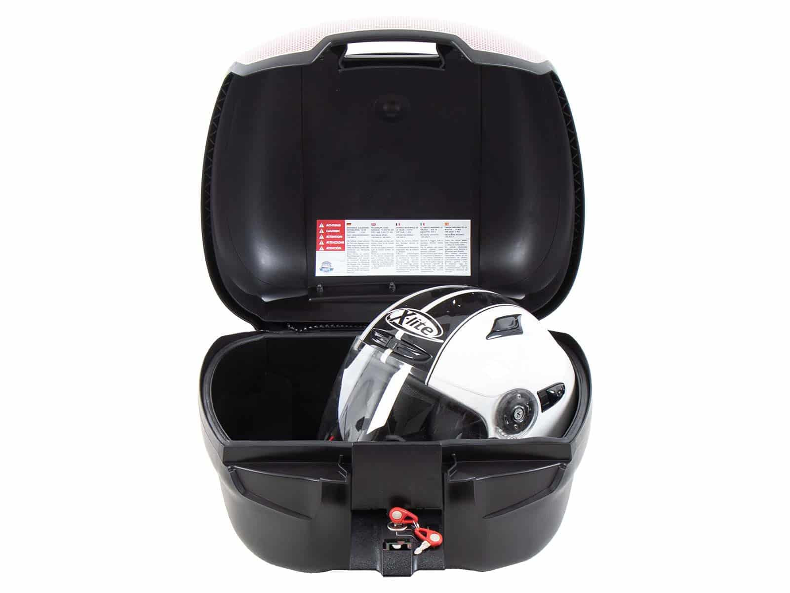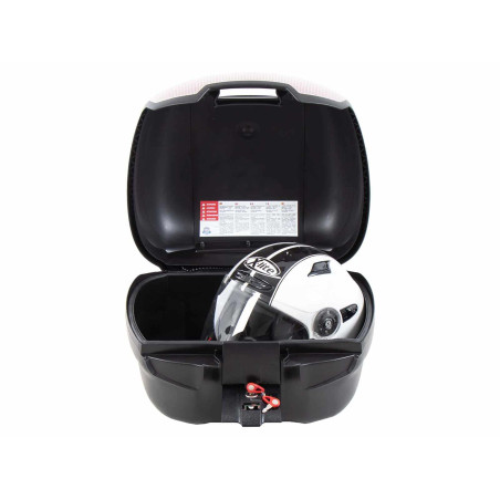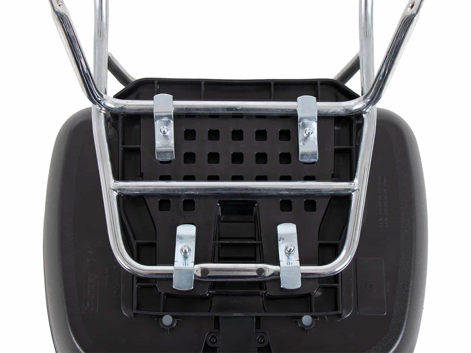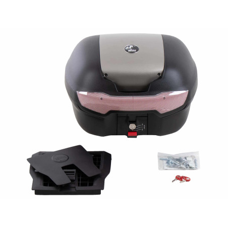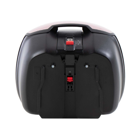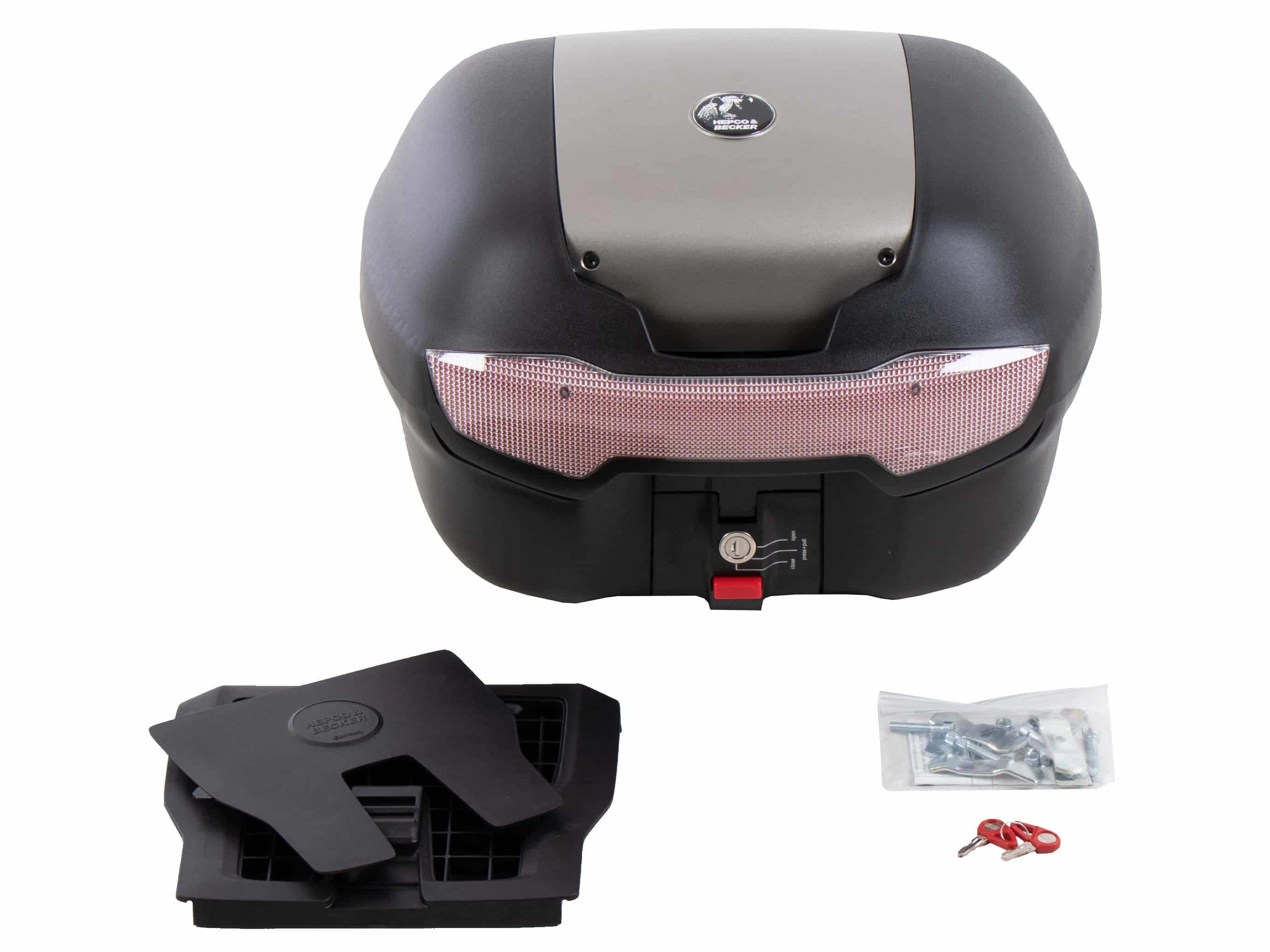 dodáva sa s univerzálnou doskou pre nosiče tretích strán. To umožňuje pripevniť ho k takmer akémukoľvek nosiču batožiny tretej strany s rovnou kontaktnou plochou, pre ktorú neponúkame konkrétny nosič horného kufra. Upozorňujeme, že tento horný kufor nie je vhodný pre rúrkové batožinové police Hepco&Becker, nosiče horných kufrov, Alurack nosiče horných kufrov alebo horné kufre Easyrack. Je však vodotesný vďaka špeciálnemu tesneniu a má plášť puzdra vyrobený z plastu s vysokým nárazom.