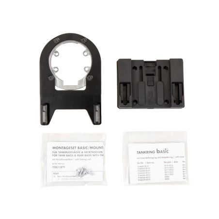 Súčasťou rozsahu dodania je BASIC krúžok nádrže, ako aj držiak pultu, ktorý sa môže individuálne priskrutkovať k vaku v závislosti od tvaru nádrže a uhla riadidiel.