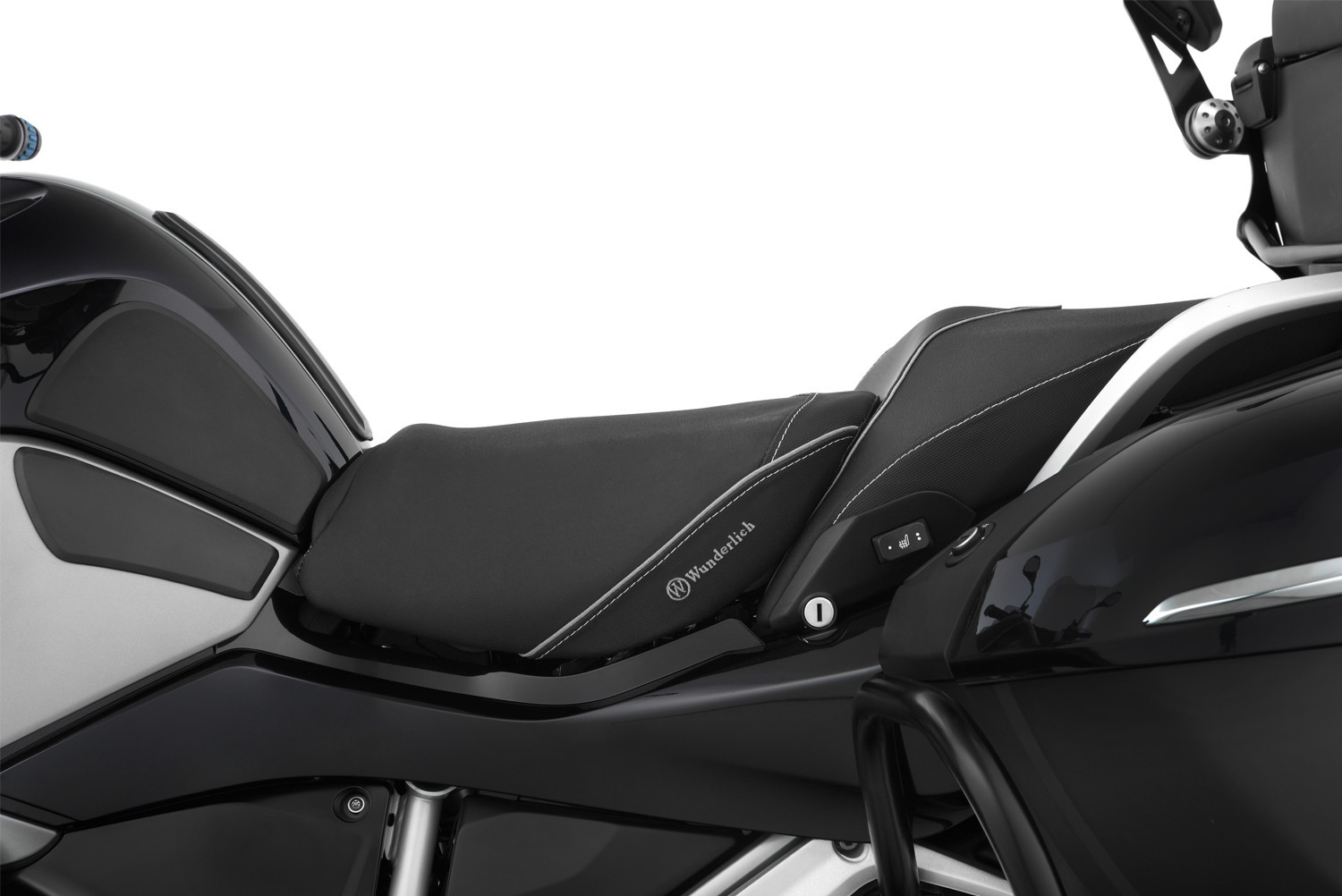 Naše sedadlá vyrábame s charakteristickým, ergonomickým 3D obrysom, ktorý umožňuje jazdcovi splynúť s jeho motocyklom BMW. Tvar a sklon prepracovane vypracovaného sedacieho jadra, do ktorého je integrované vyhrievacie teleso sedadla, podporuje ergonomicky výhodné, prirodzené držanie panvy. Takto integrovaným spôsobom je ľahké jazdiť uvoľnene, a teda aktívne. A niet pochýb o tom, že uvoľnené sedenie vytvára plus z hľadiska pasívnej bezpečnosti. Vďaka poťahu ThermoPro je teplota tohto sedadla na páliacom slnku uprostred leta až o 25 °C nižšia v porovnaní s bežným, neošetreným poťahovým materiálom. V našom sortimente máme zodpovedajúce sedadlo spolujazdca.