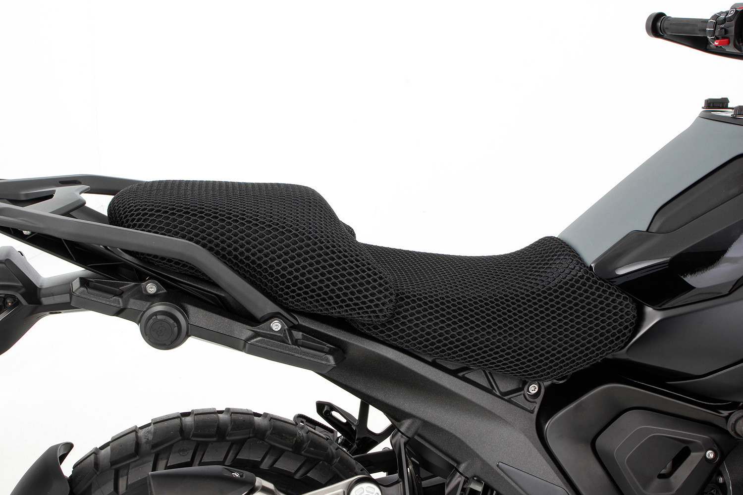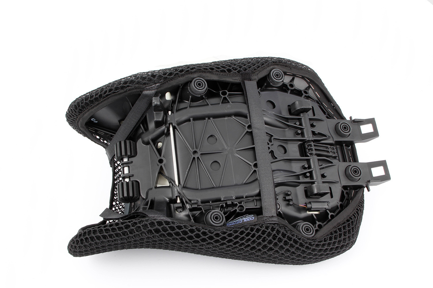 Tento poťah sedadla je klimatizáciou pre vaše originálne sedadlo motocykla BMW. Vzduch môže počas jazdy cirkulovať, pretože kryt je trojrozmerný a má hrúbku osem milimetrov. Ani pri veľkej hmotnosti sa nedá úplne stlačiť: tým je zabezpečená nielen priepustnosť vzduchu, ale zadoček zostane suchý aj v daždi. Kryt Cool Cover sa nezahrieva ani pri vystavení slnečnému žiareniu. Ďalšie plus: Vytvára masážny efekt a tým znižuje príznaky únavy.